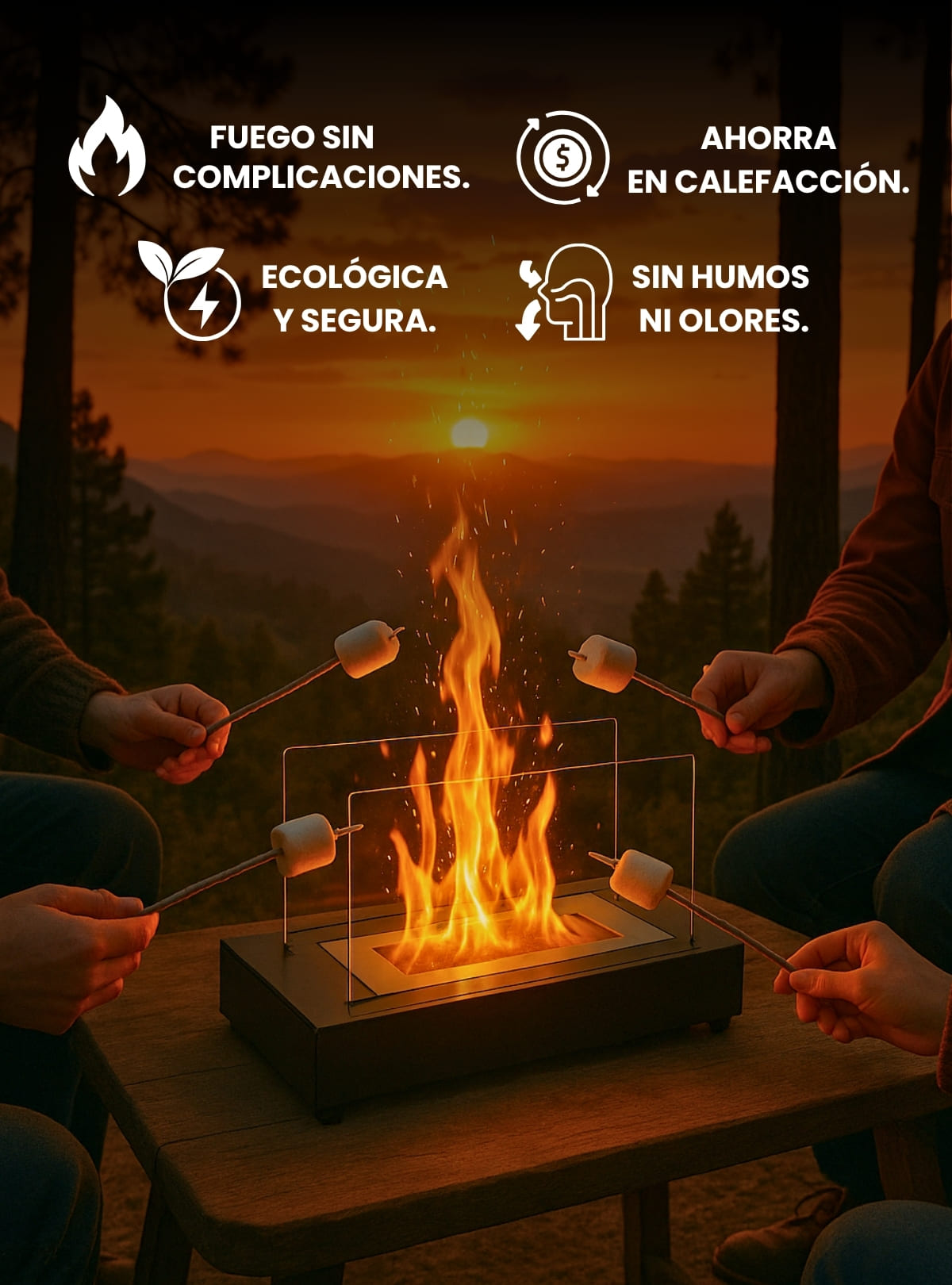Dale a tu hogar el encanto del fuego real, sin gas, sin cenizas y sin mantenimiento.