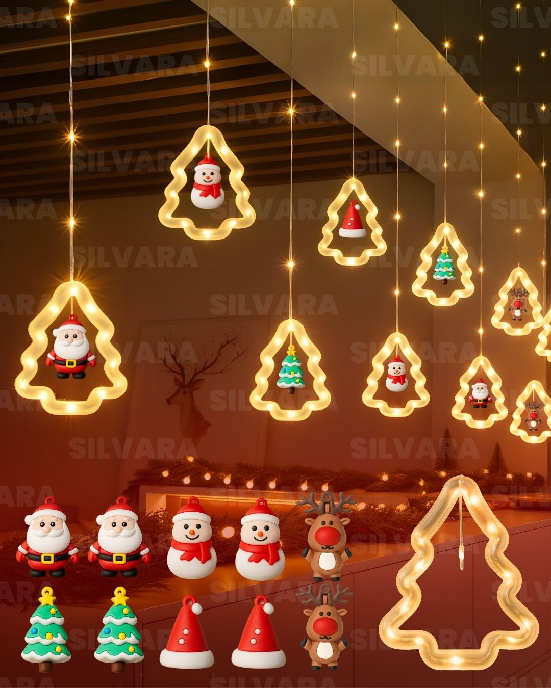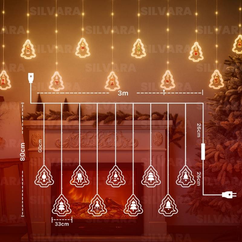 Decora tus ventanas, paredes o balcones con las CORTINAS NAVIDEÑAS y convierte cualquier espacio en un rincón lleno de encanto. Su diseño versátil se adapta a cualquier tipo de decoración, brindando un toque moderno y festivo que realza tu hogar con luz cálida y armoniosa.