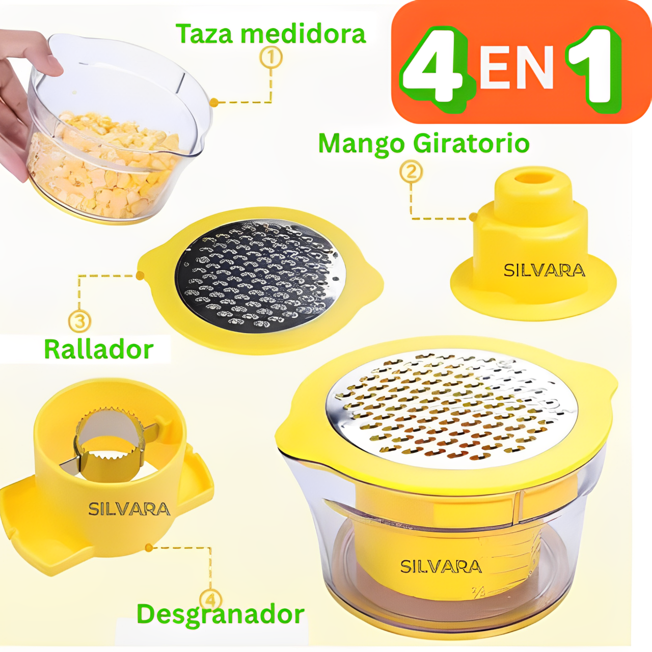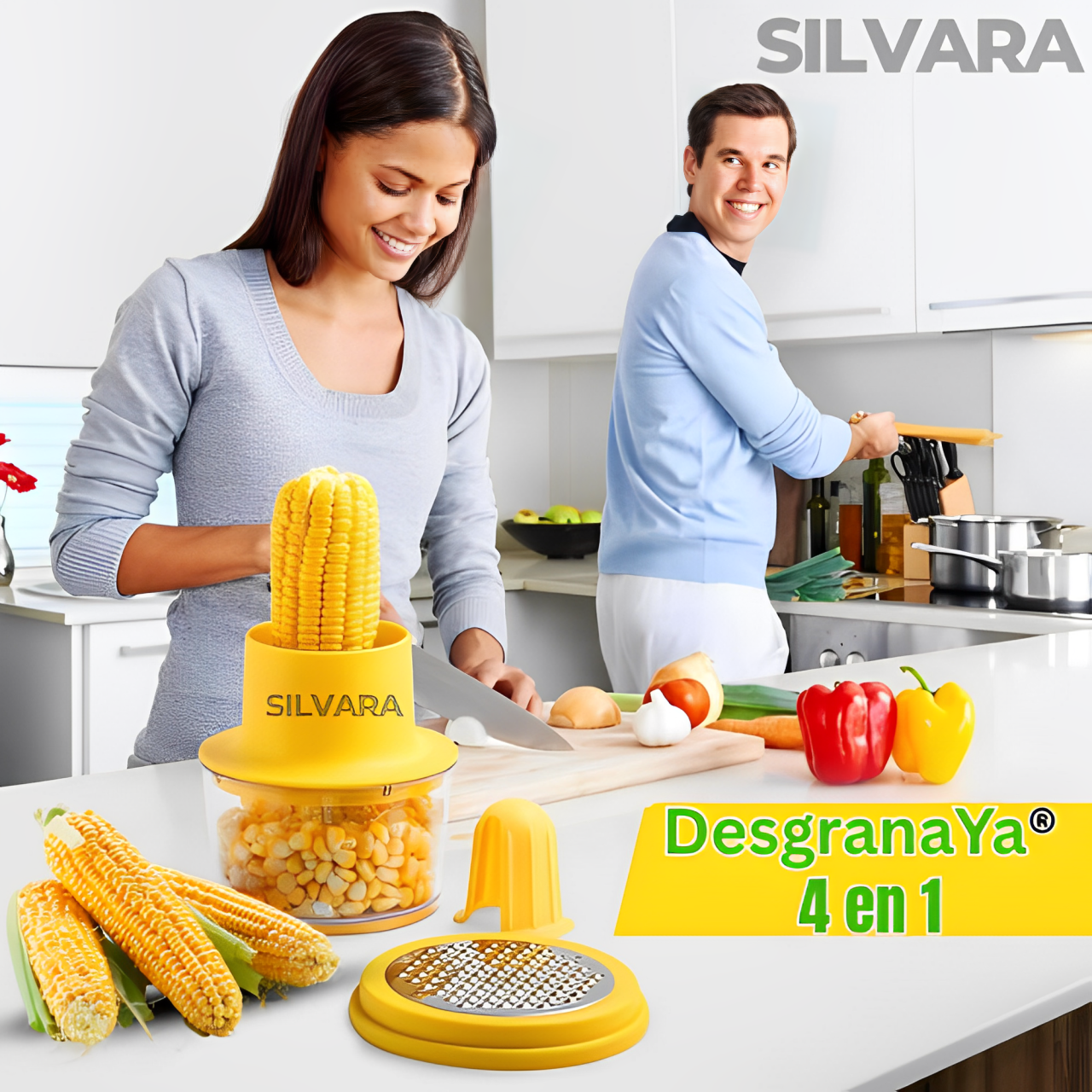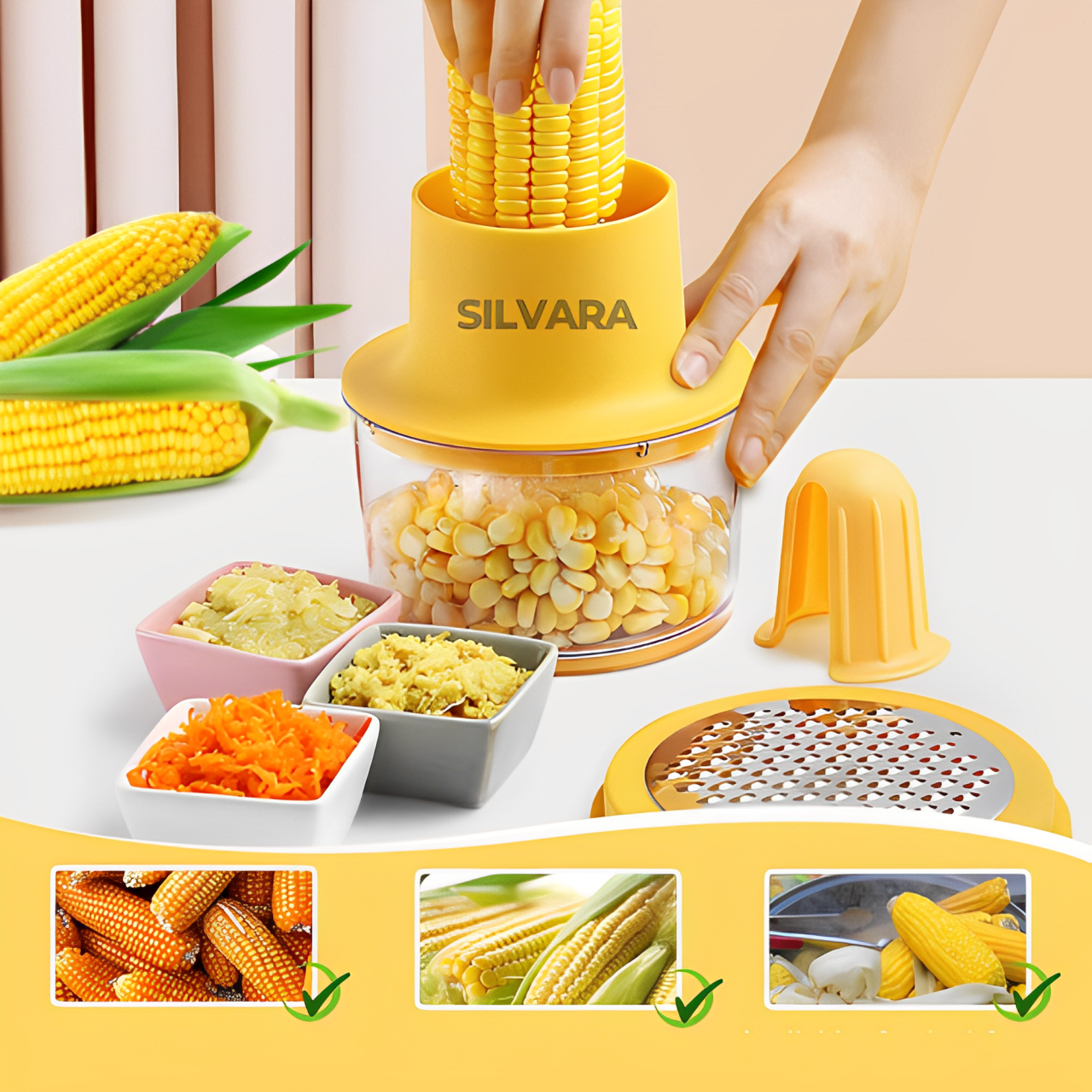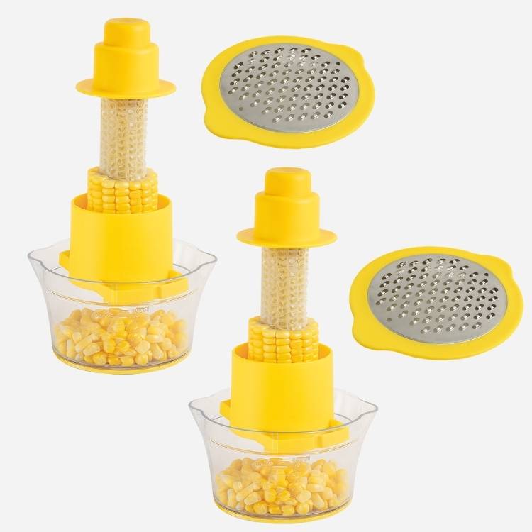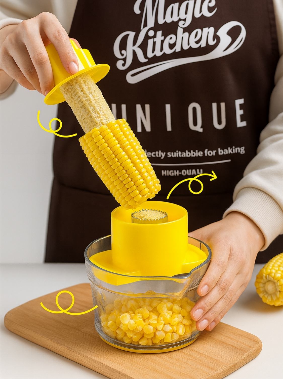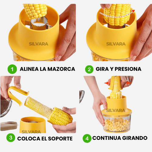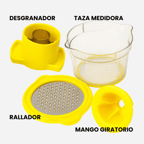 Descubre la forma más fácil, rápida de cocinar. Con el Desgranador 4 en 1, Solo gira, presiona… ¡y listo!
