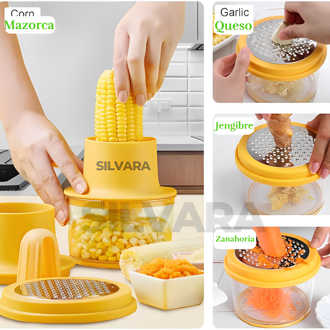 🌽Diseño Multifuncional: 4 en 1 que facilita su uso práctico en la cocina.