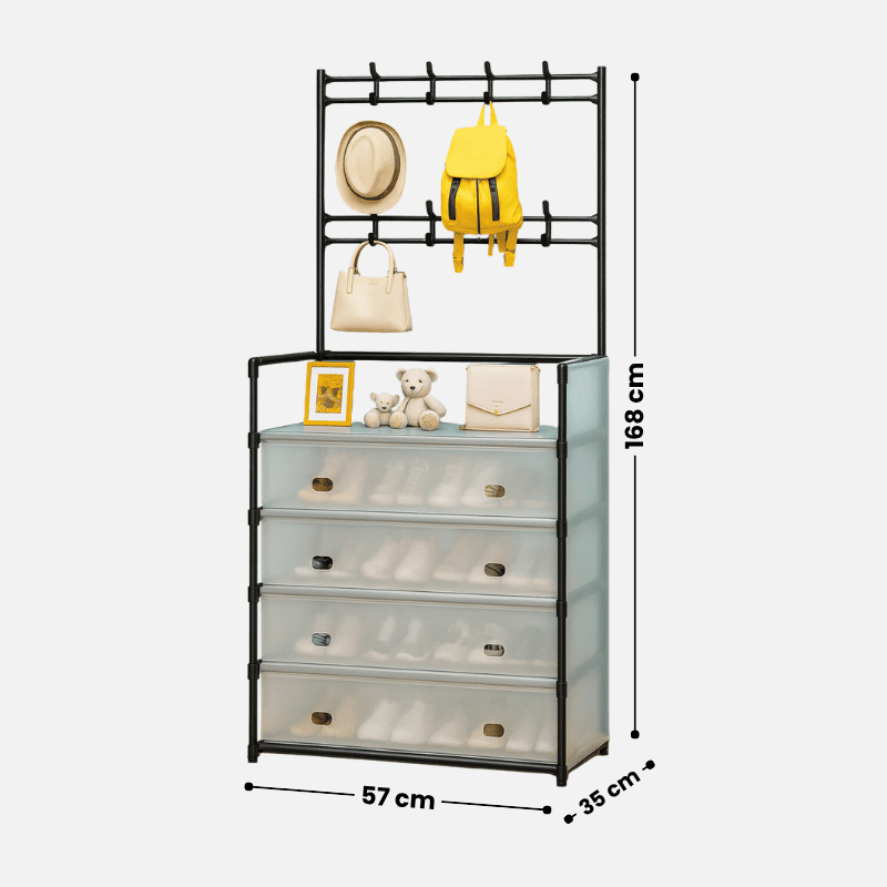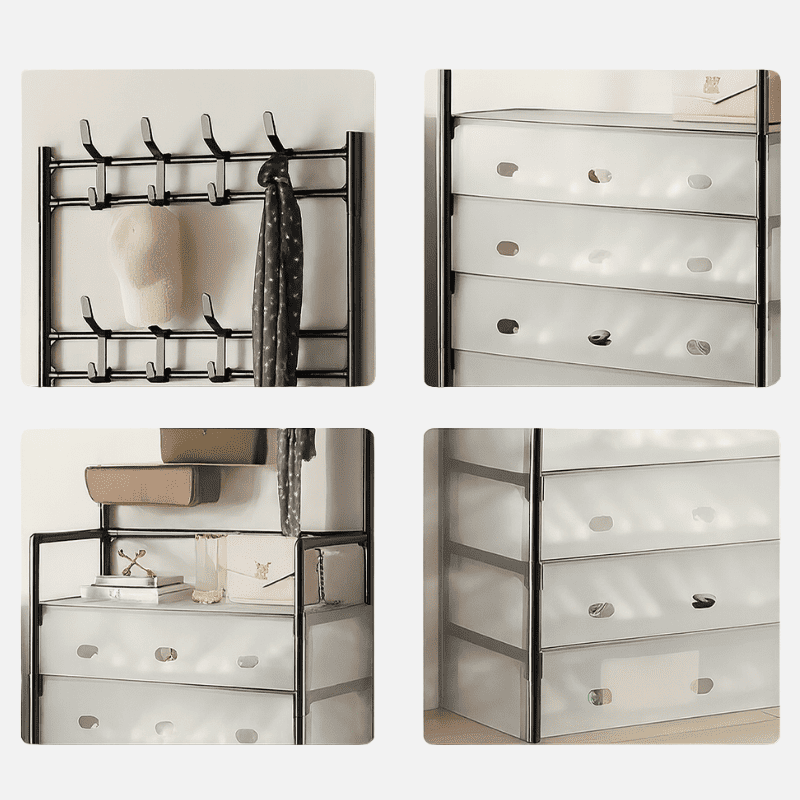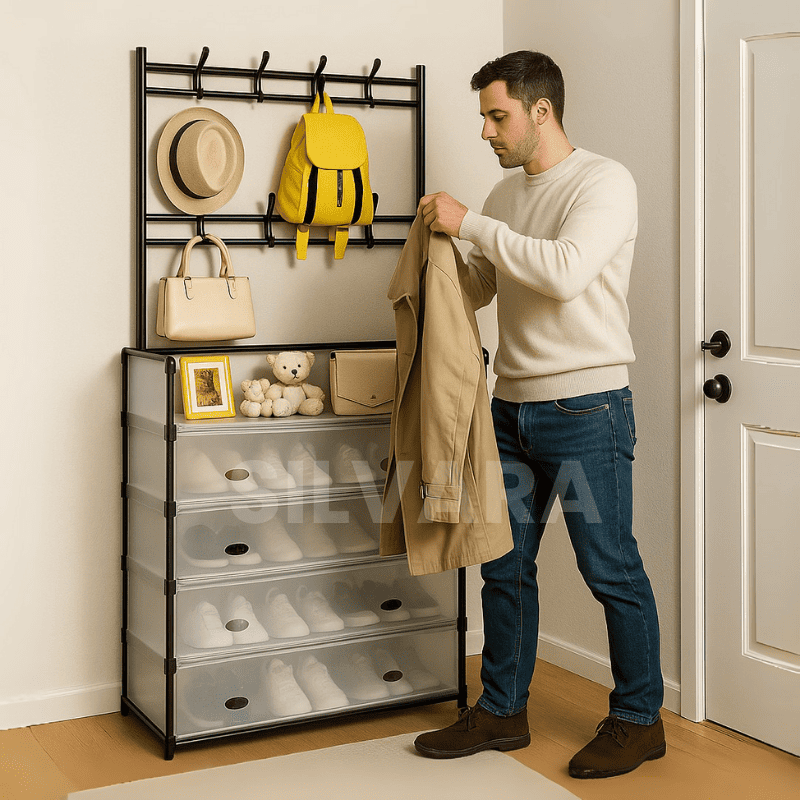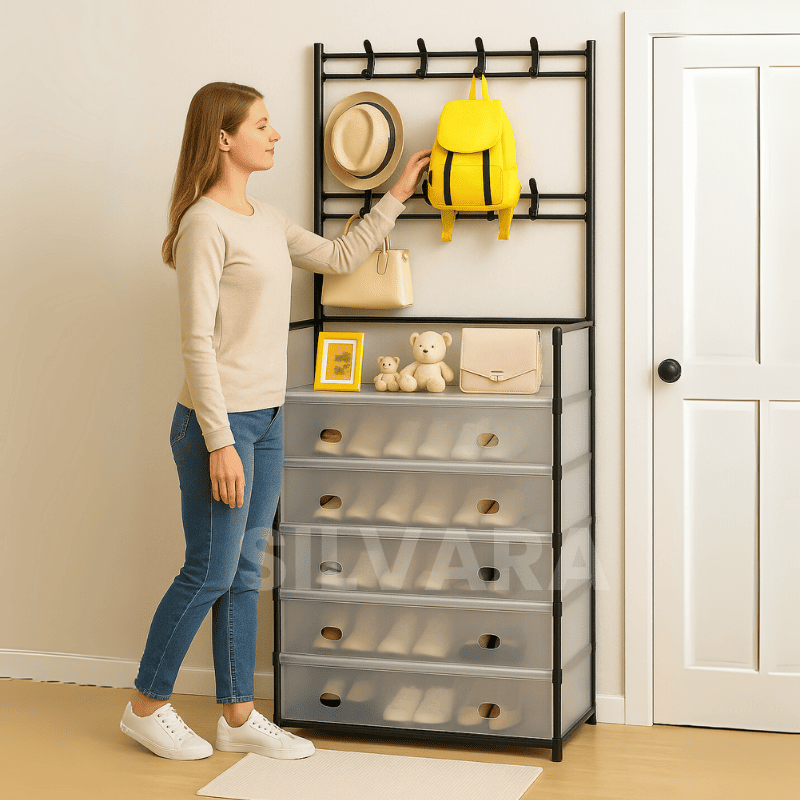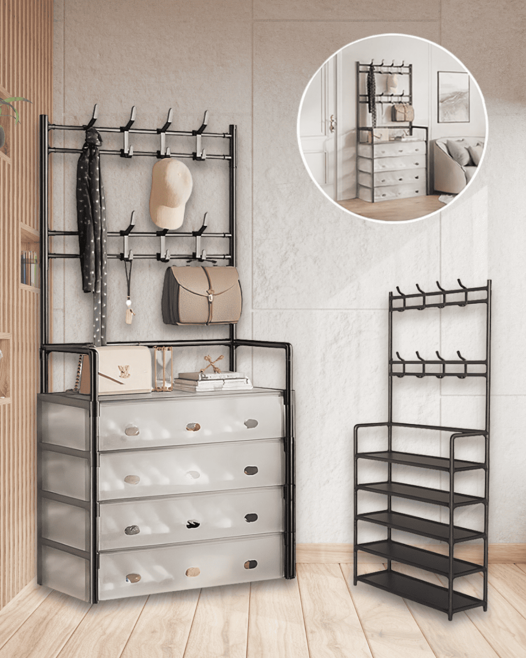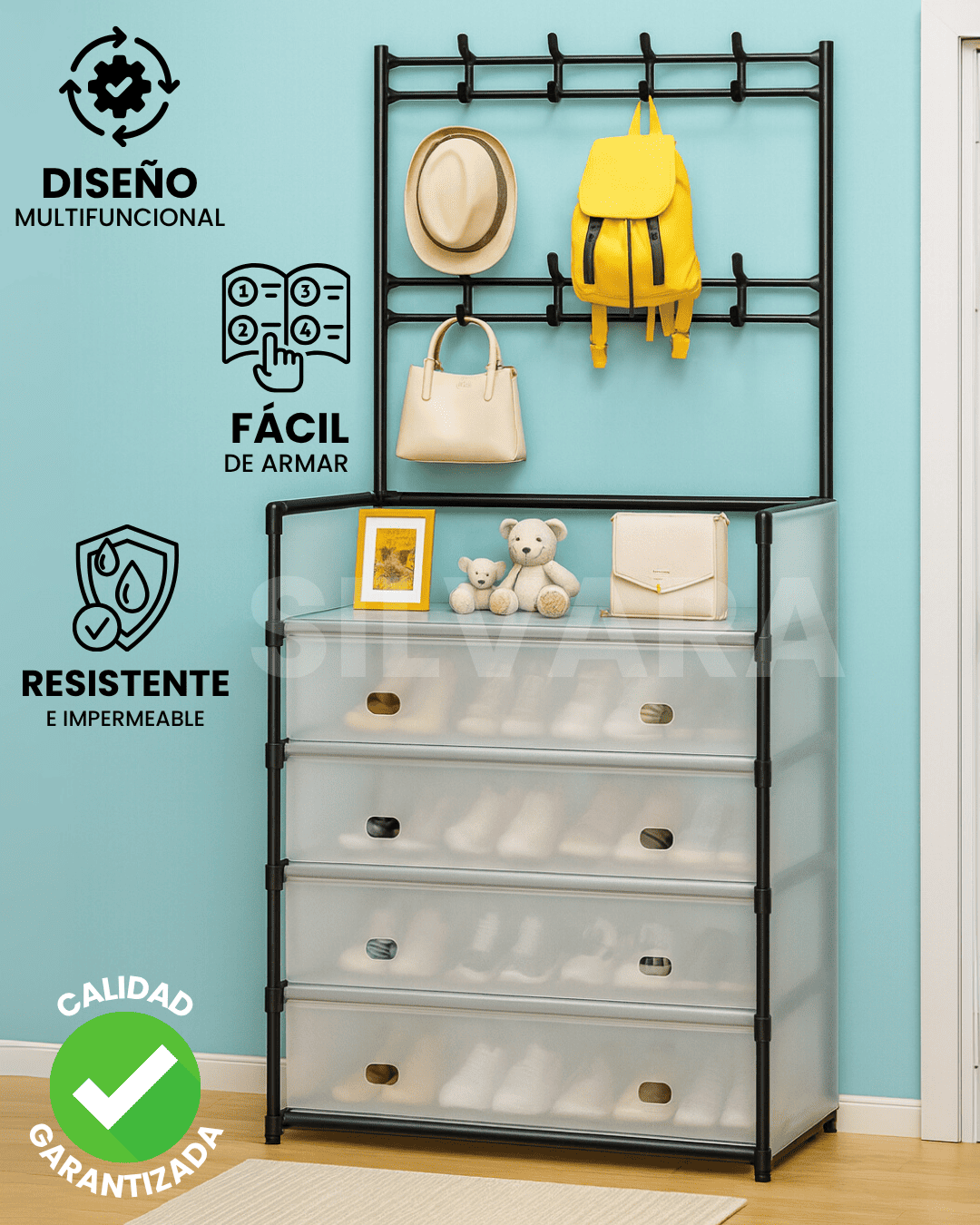 Incluye 5 niveles amplios y 8 ganchos resistentes.